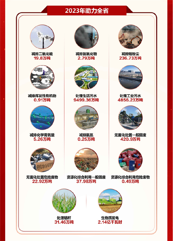 ÕûÄêÖúÁ¦È«Ê¡¼õÅŶþÑõ»¯Áò19.8Íò¶Ö¡¢µªÑõ»¯Îï2.79Íò¶Ö¡¢ÑÌ·Û³¾236.73Íò¶Ö¡¢»Ó·¢ÐÔÓлúÎï0.91Íò¶Ö£»´¦Öóͷ£ÉúÑÄÎÛË®9499.36Íò¶Ö¡¢¹¤ÒµÎÛË®4856.23Íò¶Ö£¬¼õÅÅ»¯Ñ§ÐèÑõÁ¿5.26Íò¶Ö¡¢°±µª0.25Íò¶Ö£»ÎÞº¦»¯´¦Öóͷ£Ò»Ñùƽ³£¹Ì·Ï420.9Íò¶Ö¡¢Î£ÏÕ·ÏÎï22.92Íò¶Ö£»×ÊÔ´»¯×ÛºÏʹÓÃÒ»Ñùƽ³£¹Ì·Ï37.98Íò¶Ö¡¢Î£ÏÕ·ÏÎï0.49Íò¶Ö£»´¦Öóͷ£½Õ¸Ñ31.46Íò¶Ö£¬ÉúÎïÖÊ·¢µç2.13ÒÚǧÍßʱ£¬ÎªÈ«Ê¡´òÓ®ÎÛȾ·ÀÖι¥¼áսʩչÁË¡°ÅÅÍ·±ø¡±¡°Ö÷Á¦¾ü¡±×÷Óá£