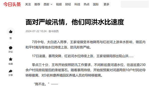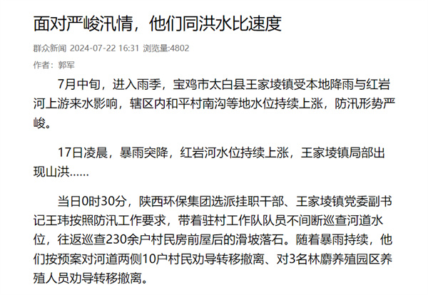 7ÔÂÖÐÑ®£¬½øÈëÓê¼¾£¬ÉÂÎ÷±¦¼¦ÊÐÌ«°×ÏØÍõ¼ÒˆÙÕòÊÜÍâµØ½µÓêÓëºìÑÒºÓÉÏÓÎÀ´Ë®Ó°Ïì£¬Ï½ÇøÄÚÇå¾²´åÄϹµµÈµØË®Î»Ò»Á¬ÉÏÕÇ£¬·ÀÑ´ÐÎÊÆÑÏËà¡£